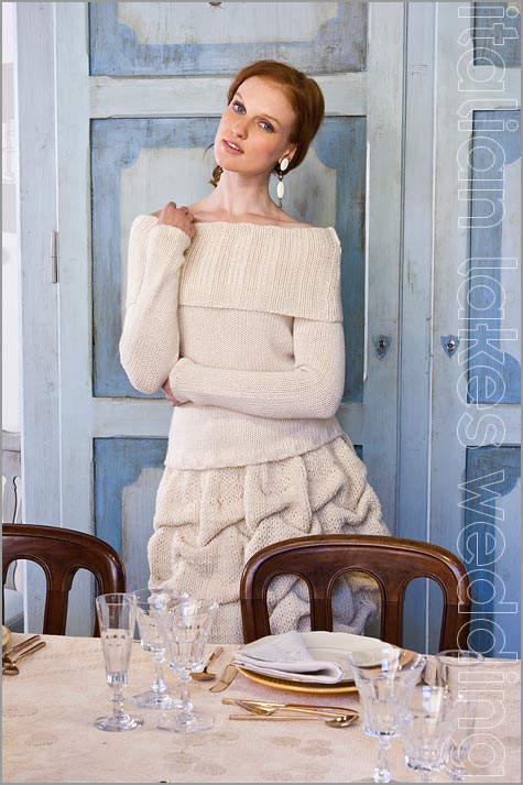 Party dress is creaded by Giuliano Marelli for Il Filo di Sandra (Lana d’Abruzzo spins).