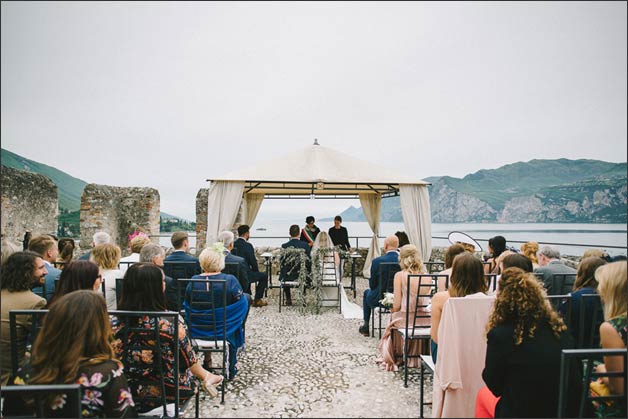 They opted for a romantic civil ceremony on top of Castello di Malcesine tower with small but very natural and chic floral decorations.