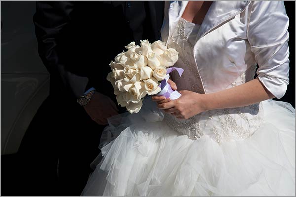 She opted for big Lilium Longiflorum (Easter Lily) in the church and a sweet ivory roses bouquet.