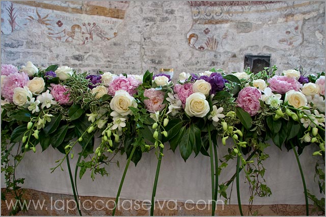 In this pictures you can see a detail of the long arrangement placed on the altar of the church.