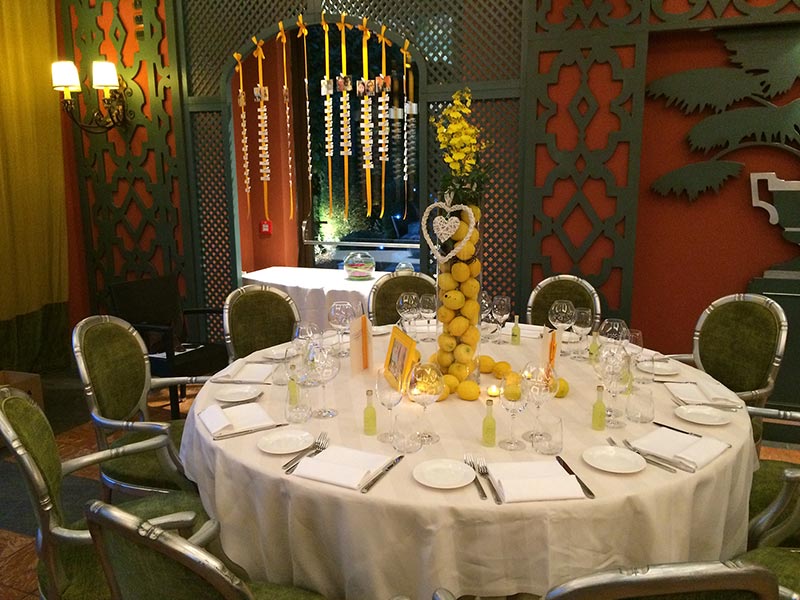Wenli wanted white and yellow decorations and so all arrangements at the resort were made of lemons, yellow orchids. gerberas, roses, some white daises and a touch of gypsophila.