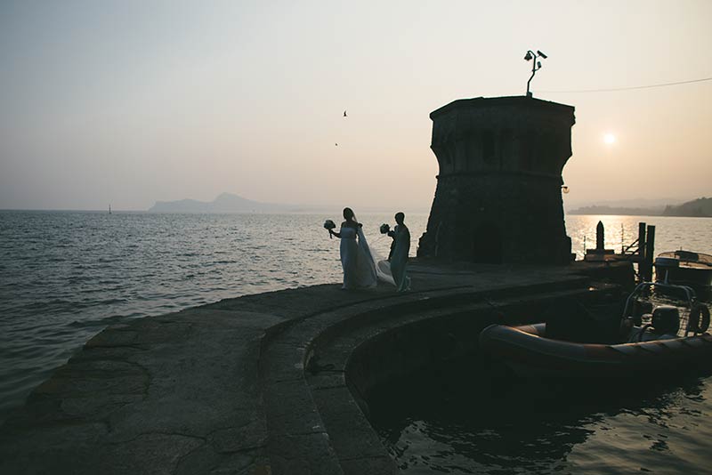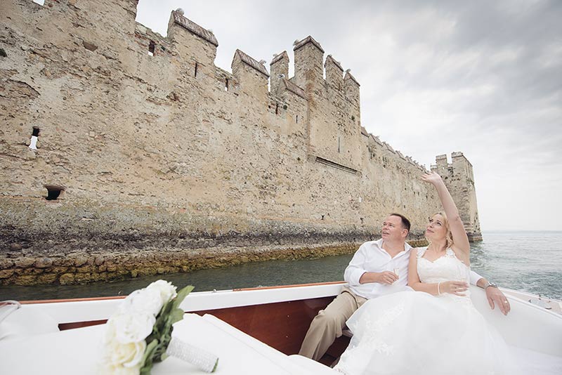 After a lovely boat tour on Lake Garda they reached a fine restaurant in Sirmione overlooking Lake Garda, just ideal for an intimate wedding like theirs.