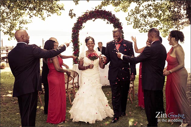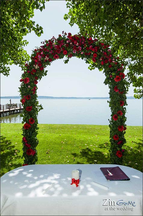 A romantic and moving religious blessing was planned in the gardens of a lovely restaurant on the shores.