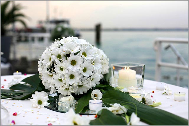 A short wonderful boat trip added a touch of glamour to their unforgettable, special day. A great surprise was waiting for them at the terrace of the restaurant: flower spread all over the floor while lanterns and candles created on the terrace a romantic atmosphere for their wedding dinner!