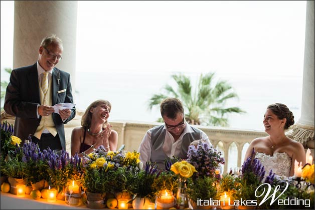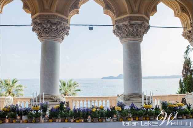 After the ceremony, a refreshing aperitif awaited the guests, in the shade of a huge Bouganville tree that climbs on the terrace of the villa. The view of the lake from the big terrace was framed by the classic Italian garden with its bushes, exquisite flowerbeds and luxuriant plants: a perfect atmosphere for the longest day of the year!!