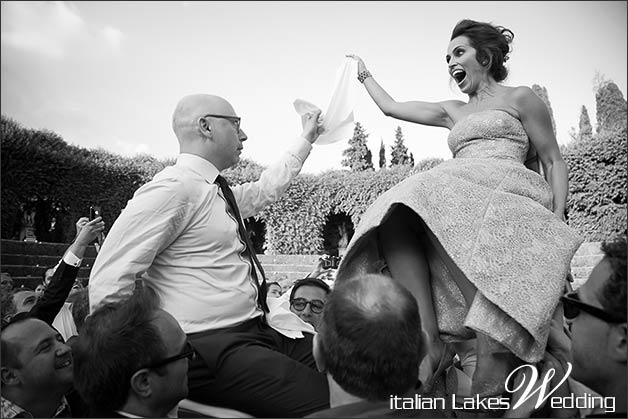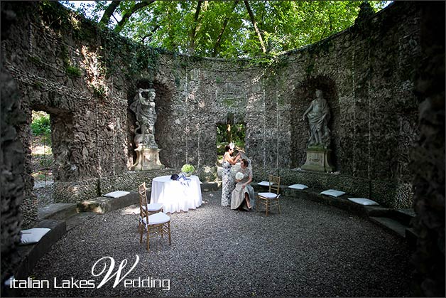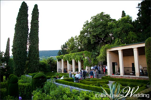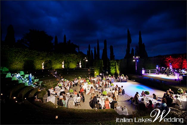 At dusk newly weds and their guess moved to the green amphiteather, a unique location! A semicircular appendix of the wide park of the villa. Theatre is made of buxus and cypress bushes steps, niches in stone host Ancient Greek Mythology statues.