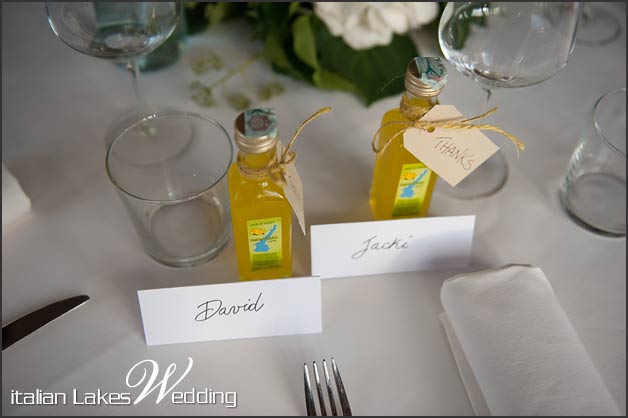 As a memento for their parents and friends, Jacki and David wanted a bottle of Garda Limoncello for the adults and scrumptious lemon sweets for the children, they were simply sat by their names cards. What a lovely way for everyone to take home a nice memory of the flavours and colours of Lake Garda.
