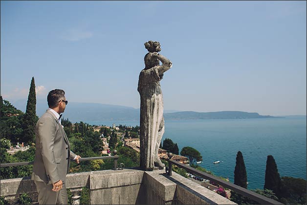 Symbolic wedding rite was celebrated in the beautiful terrace of the Villa overlooking the lake, the only building you’ll find on Isola del Garda.