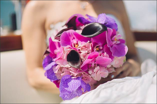 Wedding ceremony was simple yet very very emotional. It was even more special by precious details decorating the venue: white chairs and a colorful cascades of pink and purple flowers, the same of bride’s vibrant bouquet.
