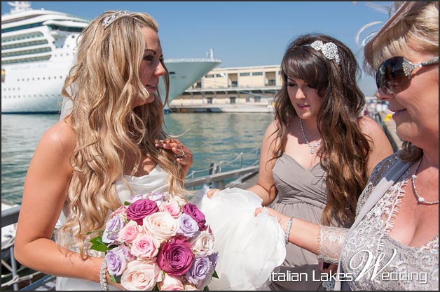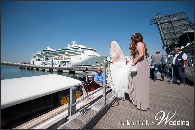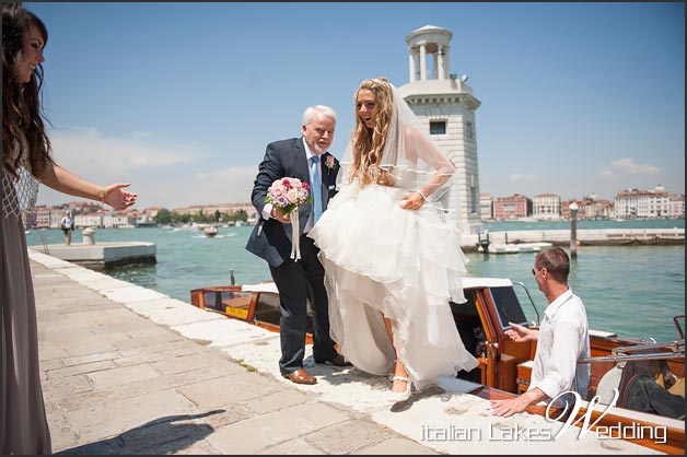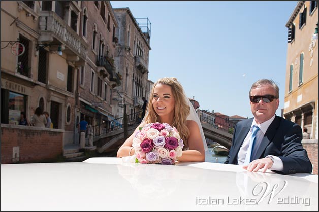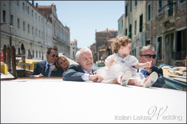 The morning after, a typical Venetian water taxis took the guests first and stunning bride Mairead and her family after to the ceremony.