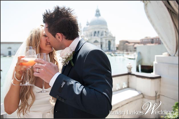 The area of the terrace reserved in exclusive for the wedding party looked directly out onto Grand Canal and famous Chiesa della Salute.