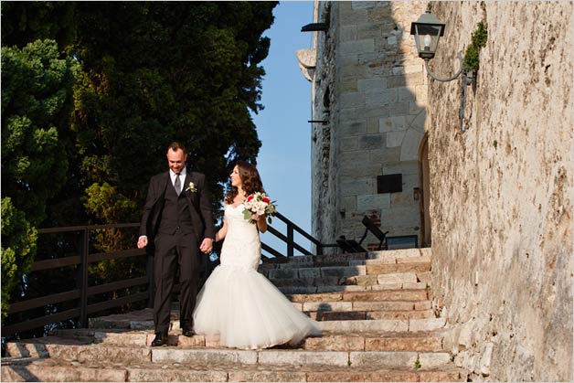 They chose the Scaliger Castle in Malcesine on Lake Garda which appeared to be just the right setting to make their dreams come true! It perfectly matched their idea of a traditional wedding destination with a medieval touch. Castle was very different from bright and hot summer months look it has. Brian and Kristina choose early October for their wedding. Lake Garda offers a special atmosphere for an early autumn wedding, a softer and much more intimate flair we love.