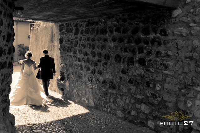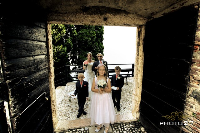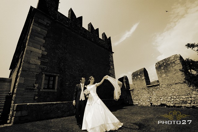 The venue to tie the knot was Scaligero Castle, stately rising from the village promontory! The Castle has a very long and rich history. It had many owners who kept it polished and magnificent through the centuries. It was built in the first millennium by the Lombards and then destroyed and rebuilt by the Franks. From there on, it has been a jewel in the hands either of Republic of Venice, of Austrian-Hungarian Empire, of France and of many Italian lineages. Then it was declared National Monument in 1206.