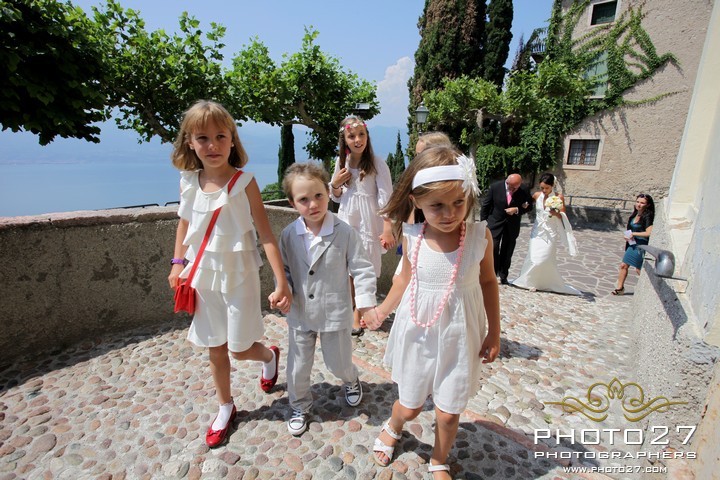 Rocco is Italian and Barbara is Austrian, but they both live in Singapore. They decided to have their wedding on Lake Garda to give to their relatives and friends a chance to get together. They are all living in faraway places and they do not meet often.