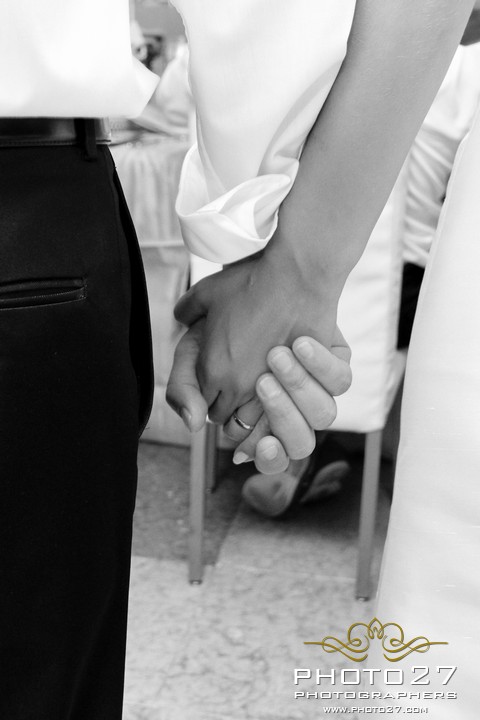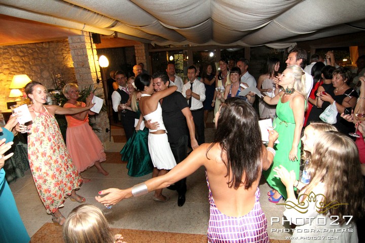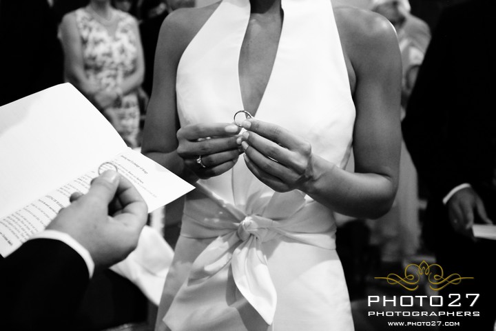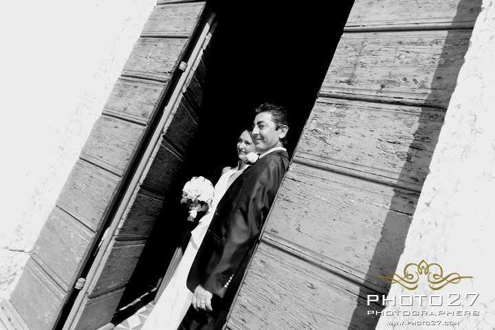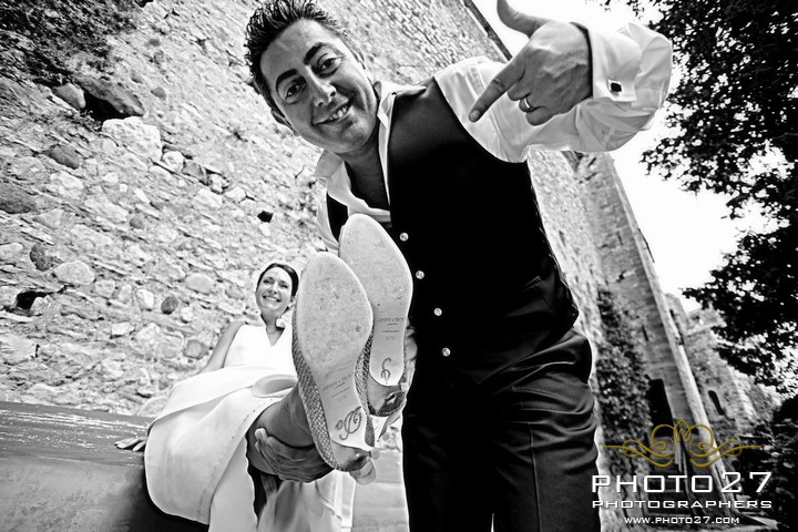 Great them of Photo27 photographers captured every detail: loving looks, knowing gestures… and the fantastic shoes of Barbara, a pair of wonderful Jimmy Choo decorated with a fun writing on the soles: I do!
