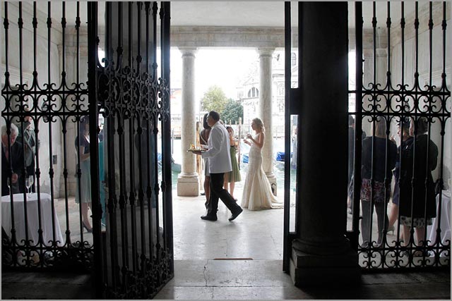 After the ceremony they shared the toast to their new life with their guests while appreciating the Venetian gondolas passing by.