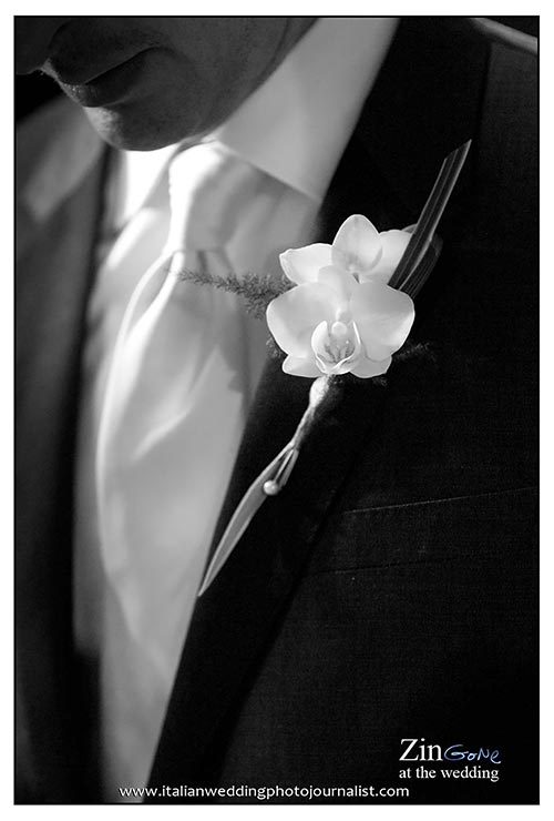 These lovely orchards matches also Lisa’s wedding bouquet and Jim’s buttonhole. Lisa wanted a total white colour scheme that matches also reception and wedding cake decorations.