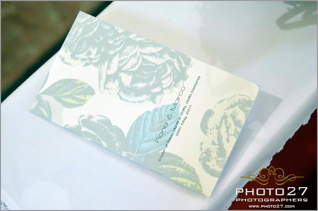Stationary was customized and created on Fiona’s wishes reproducing exactly the pattern on bridesmaids dresses on order of services, names cards, table names and table chart.