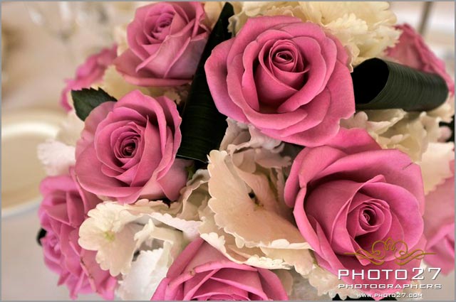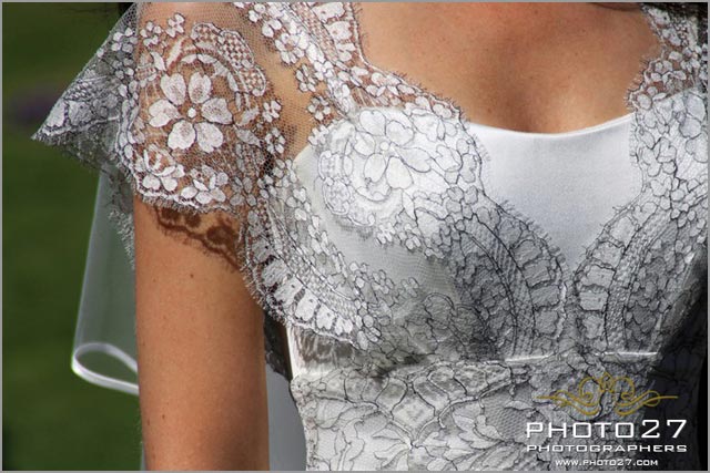 Fiona didn’t opt for classical bridesmaids dresses but she piked lovely short dresses with a vintage roses pattern.