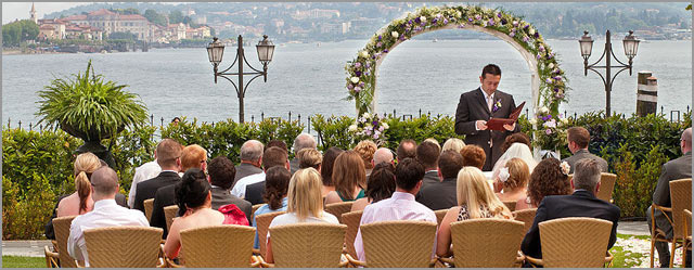 Do you remember? Bride and groom under a flower arch, on a green lawn, rose petals and romantic ceremony with stunning view on Lake Maggiore and Borromeo Islands. A glowing panorama! Isn’t it like a dream?