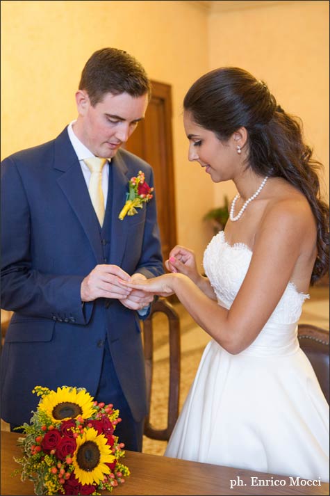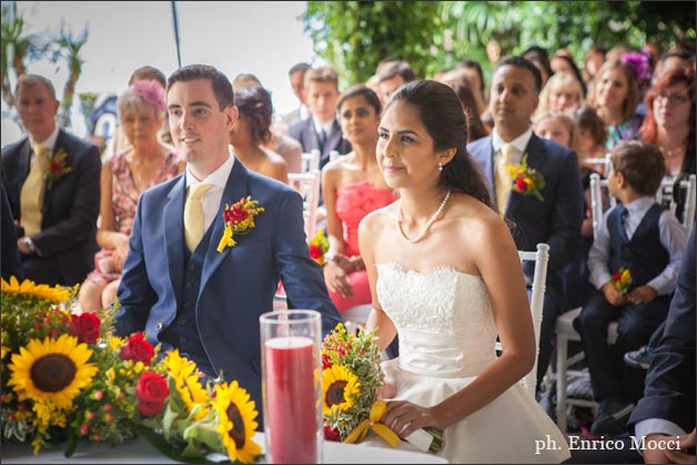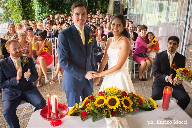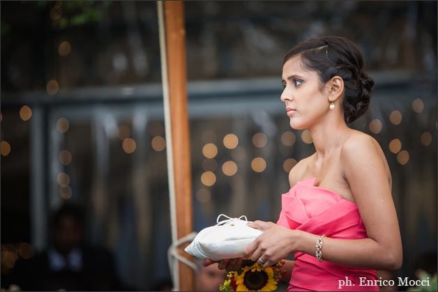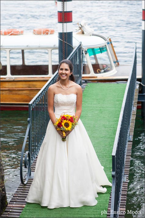 As the town hall is located literally next door Villa Rusconi, right after the blessing at the villa, Sonia James and bridal party left on a boat to reach it and make it legal.