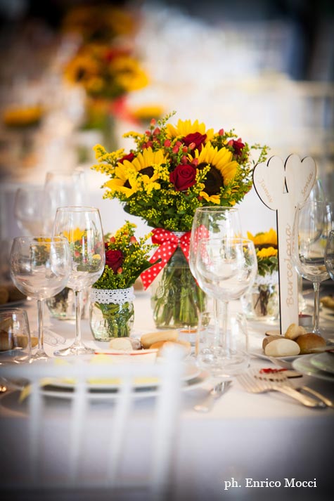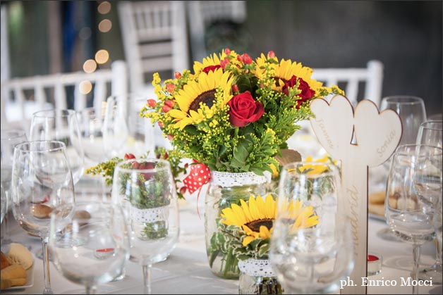 Dinner was simply delicious and decorations on the tables were very sweet too: sunflowers, hypericum berries and roses were placed in country style jars of different dimensions.