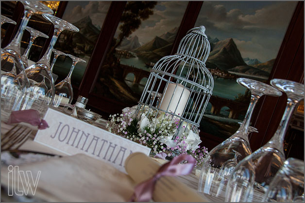 Dinner was planned in the elegant room of the hotel. For this occasion we – as La Piccola Selva floral designers – designed a vintage bird cage centerpieces.