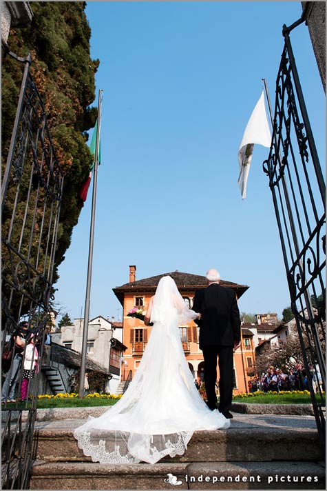 There is no more romantic arrival of a bride than by boat and Siobhan arrived as not only a stunning ‘sposa’ but a true Lady of the Lake, escourted down an open air aisle adorned with colourful rose petals, towards the 16th century facade of Villa Bossi, boasting an attractive loggia with a beautifully frescoed ceiling.