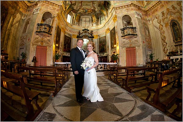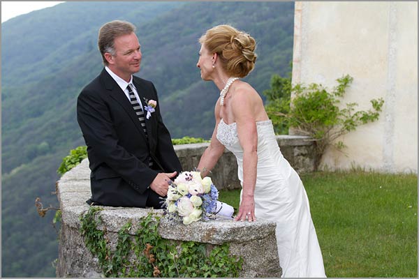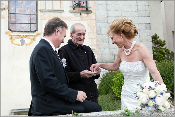 After the moving and very intimate ceremony Donna and Mark took some pictures in the little garden in front of the Church of Madonna del Sasso and inside the church. The parish priest came also to congratulate and this was one of the sweetest moment of the day… he offered some sugared almonds to the couple just to wish good luck!