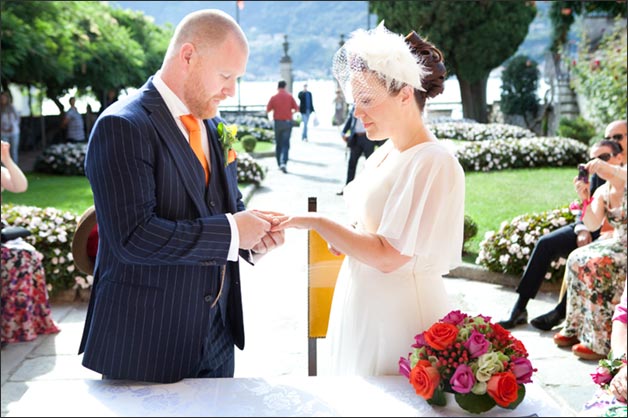 Todd had a great outfit for the day! Everybody was looking at him in Orta. He was super handsome! He was a typical English man with a twist of color just respecting Adele’s palette. He had a bowler hat with orange plume, pocket watch with chain – he is a watches lover! – and a gentlemen’s London umbrella to complete the look! His suit was navy pinstripe one from a Swidish designer… a little touch of Sweden the country were Adele and Todd used to live.