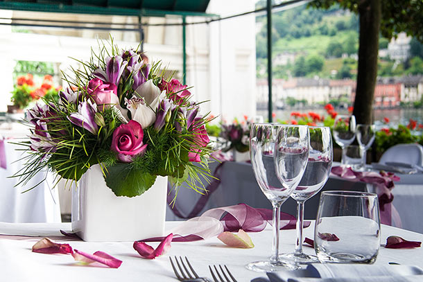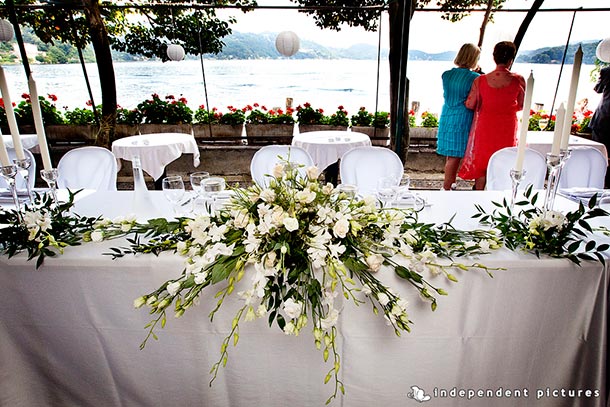 Viviana and Alessandro’s wedding at San Giulio restaurant. centerpiece: La Piccola Selva floral design