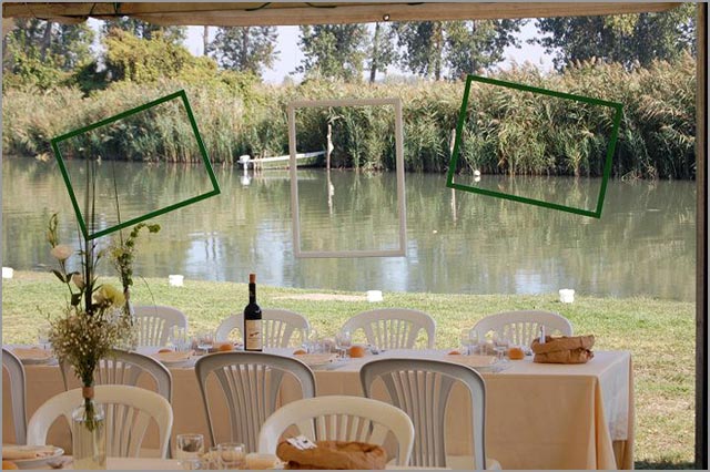 I was really proud to help Marianna & Carlo with their special ecofriendly wedding last October. The bride and groom wanted a very casual party in the countryside with many friends ( more than 200!!!). So they chose the Park of the Mincio Rivalta (close to Mantua) as “their location”, a place rich in memories of their loved ones, a place of their scouting experience. There a marquee was mounted right next to the River.