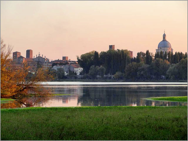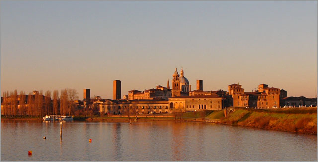 If you enter Mantua crossing the bridge from the north-east you can see the city surrounded by its three lakes standing like a golden mirage. The city lies on the shores of Lago Superiore, Lago di Mezzo and Lago Inferiore. Unlike the other cities on the lakes in the North of Italy, it is on the open plain, and its trio of lakes is actually a glorified widening of the river Mincio that makes Mantua resemble a small inland Venice.