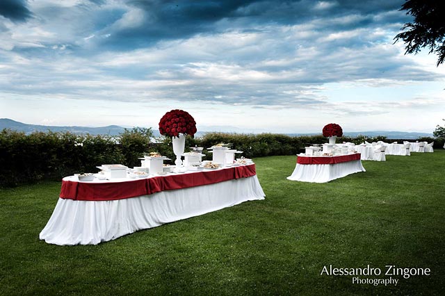 Odescalchi Castle welcomed the couple and guests with elegant and striking wedding decorations in the shades of white and red.