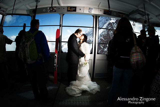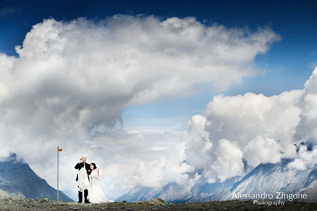 We contacted the photographer Alessandro Zingone, that the bride loved because of his cinematic view and we started from Stresa station, Lake Maggiore, to reach Zermatt, Switzerland.
