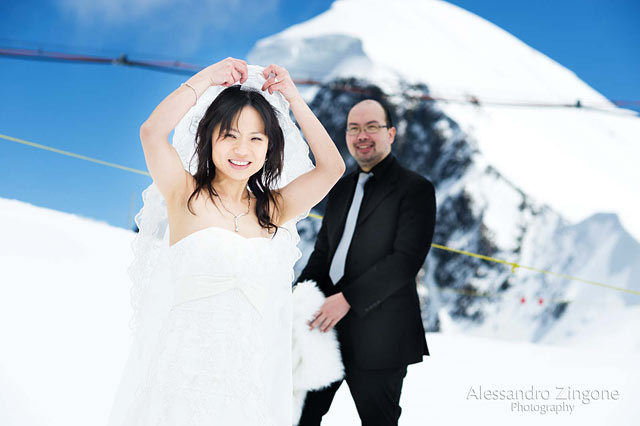 Laverne, wife of Hong Kong resident in Sydney, she had never seen snow and has always had the desire to get married in the snow.
