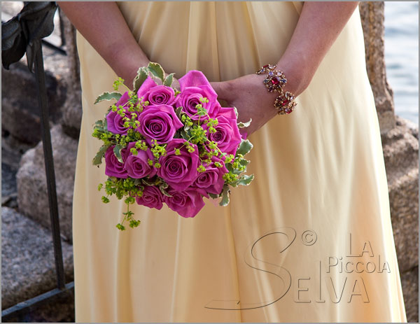 To match light yellow bridesmaid dress we opted for little bouquet of Aqua roses that in its semplicity gave a natural and smooth appeal to all.