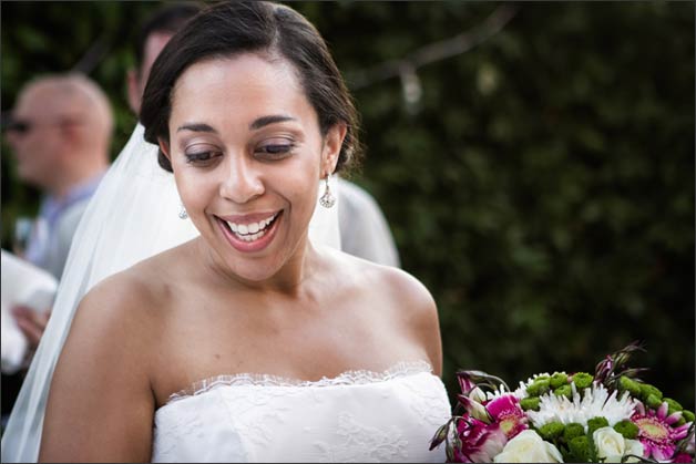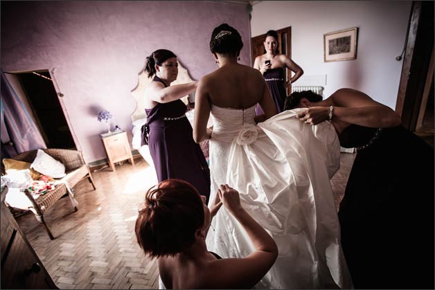 All looked like really relaxed, but electricity was almost tangible. The atmosphere was like a beauty salon not only for the flower-scented air, but also because the room was the widest and most beautiful of the villa its amazing frescos on the ceiling. Melanie sat in front of the mirror while her friends were taking care of her make-up, hair and wedding dress. I cannot say who was more excited… if the bride silently seated or all the girls speaking loudly close to her!