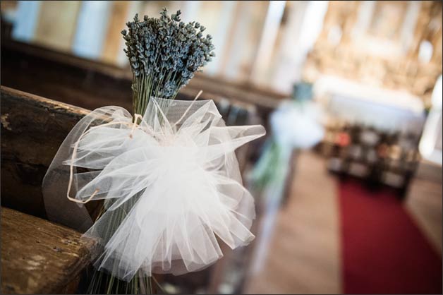 The moment of the celebration was just around the corner and all the spouses’ family and friends arrived the church of Madonnino in the small city of Sbarra (near Panicale, close to lovely city of Perugia). There were flowers everywhere in purple shades respecting the color scheme Melanie wanted for the wedding.
