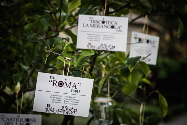 Table decorations were simple recalling the leafy Tuscan countryside. Moreover Melanie expressly wanted every table to be named by Italian destinations Melanie she cared for.