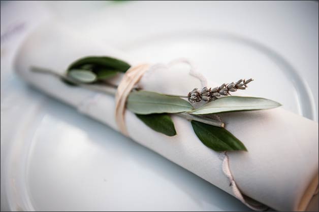 Color scheme Melanie wanted for the dinner was white and emerald green as the small olive branches held within each napkin. Isn’t it a great idea?