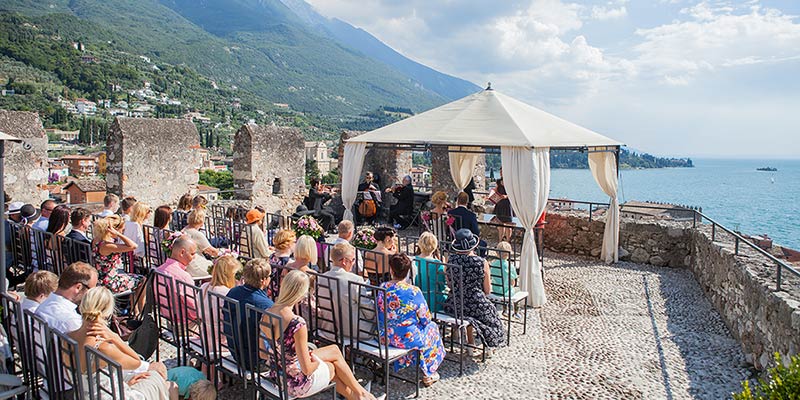On Lake Garda you could opt for Torri del Benaco, Gardone Riviera and many other town halls, the most amazing above hall is surely the Castle of Malcesine where you ca have an outdoor civil ceremony on top of its tower overlooking a stunning view over the lake.