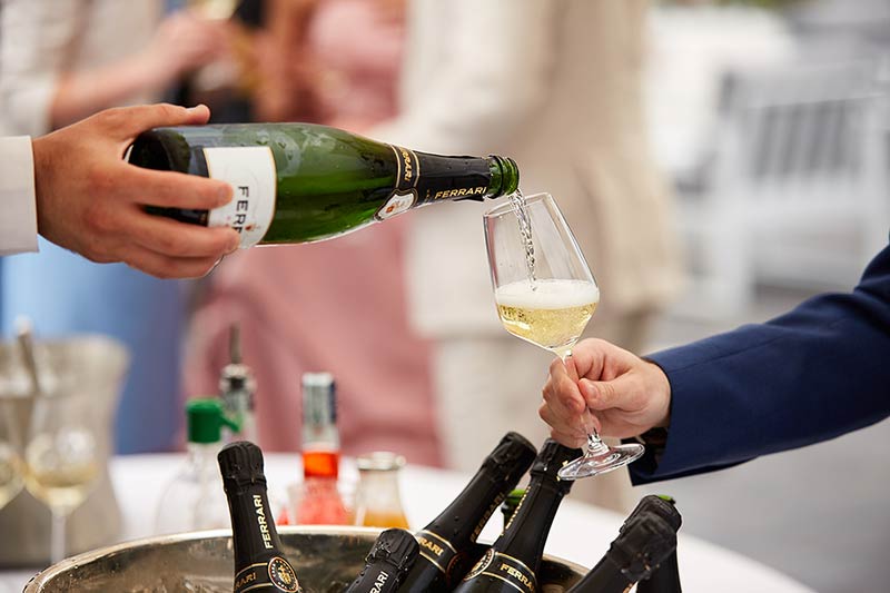 Relatives and friends await the bride and groom underneath the large white gazebo. An aperitif served on the lawn, the tables set in a blaze of flowers and colours, carefully presented elegant food and high-quality wines.
